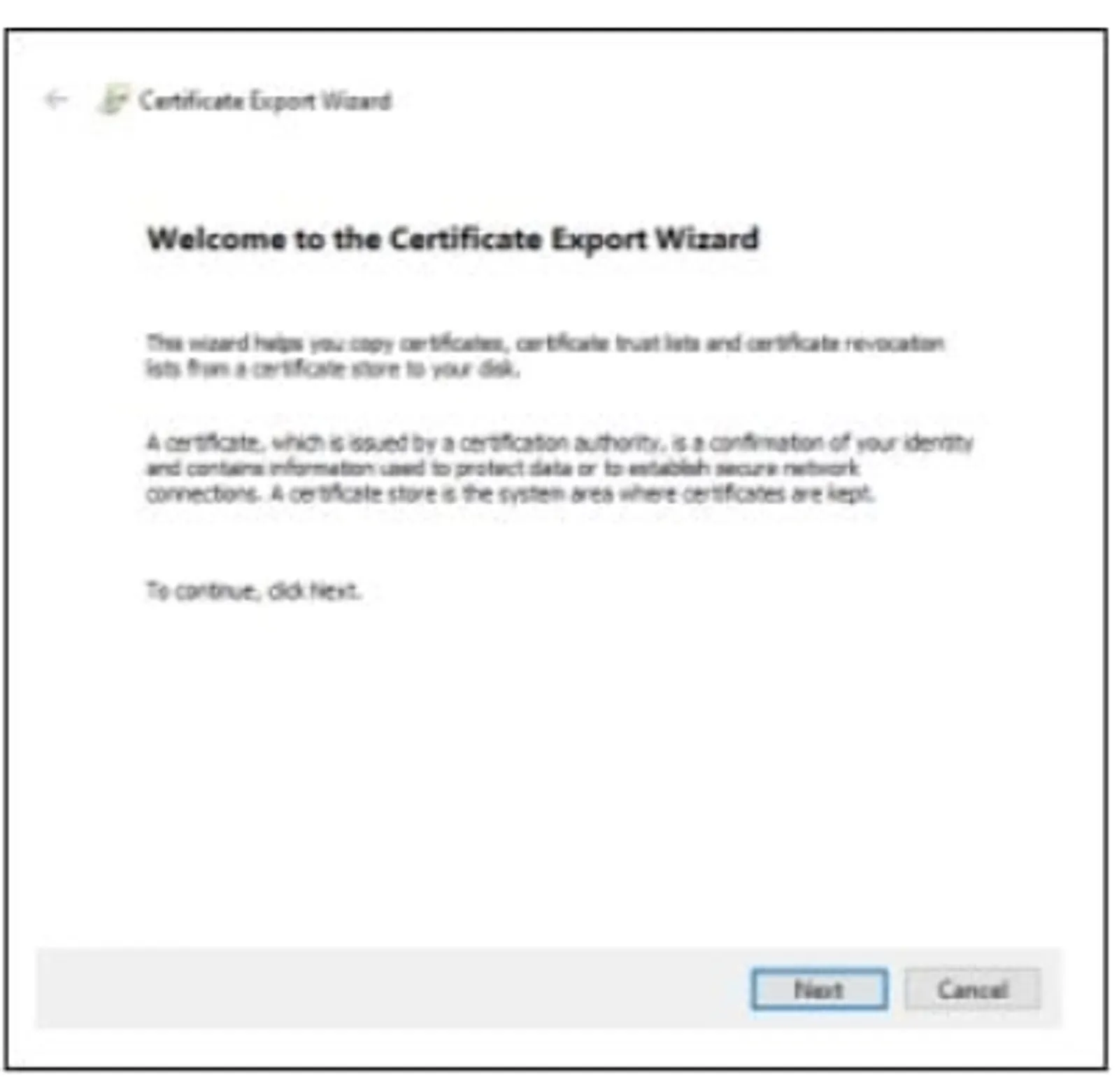 After we perform all the above steps, we will be redirected to a new window where we need to select the format for the certificate. We will have to choose DER encoded binary and click on Next.